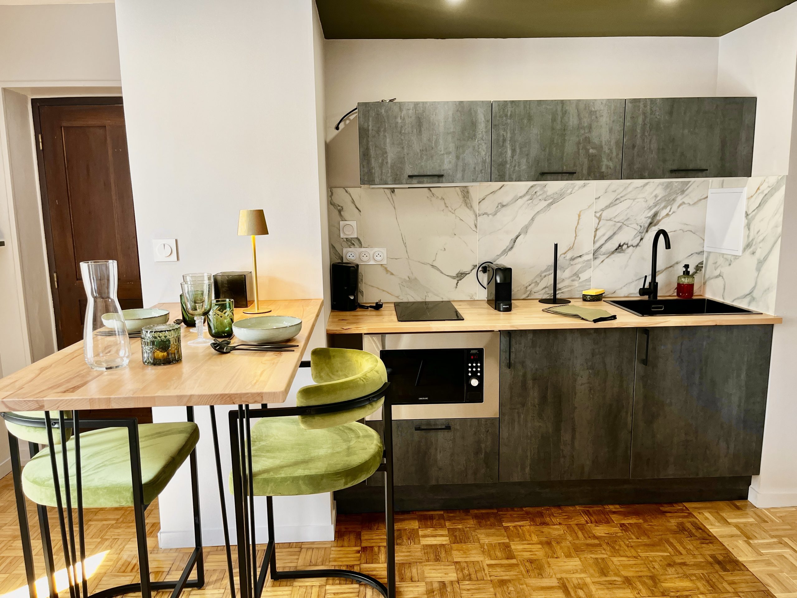 Utilisez notre kitchenette pour préparer ou réchauffer un repas ou savourer une planche de charcuterie italienne (réservation recommandée).